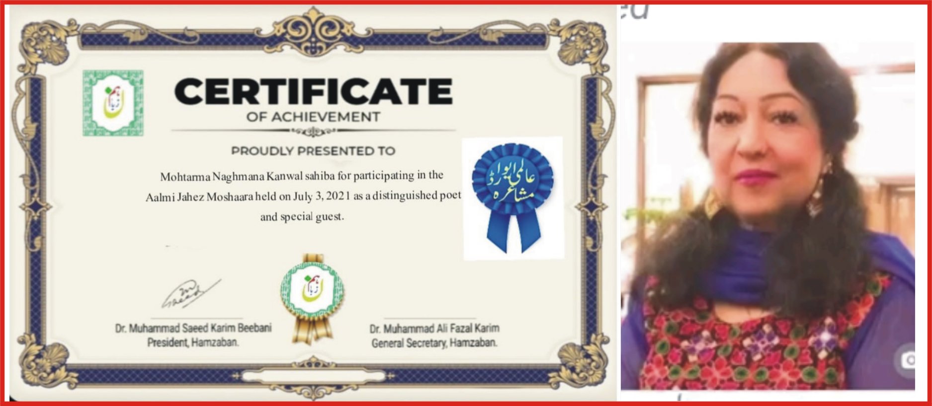 Ms. Naghmana Kanwal, a world renowned award winning poetess, will participate in the World Poetry Festival on July 3 as…